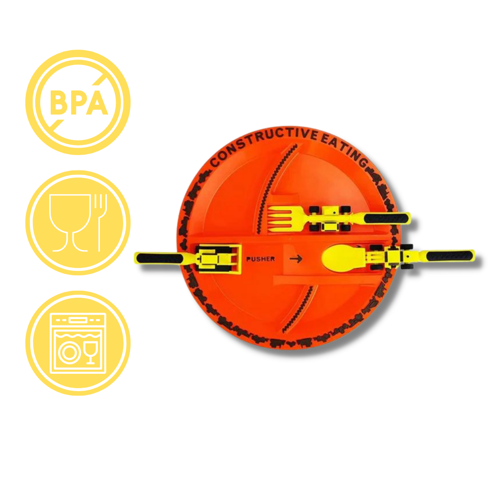 Creative Constructive Eating Plate and Utensils Set   - Designed with Safety and Motor Skills Development in Mind - Ozerty