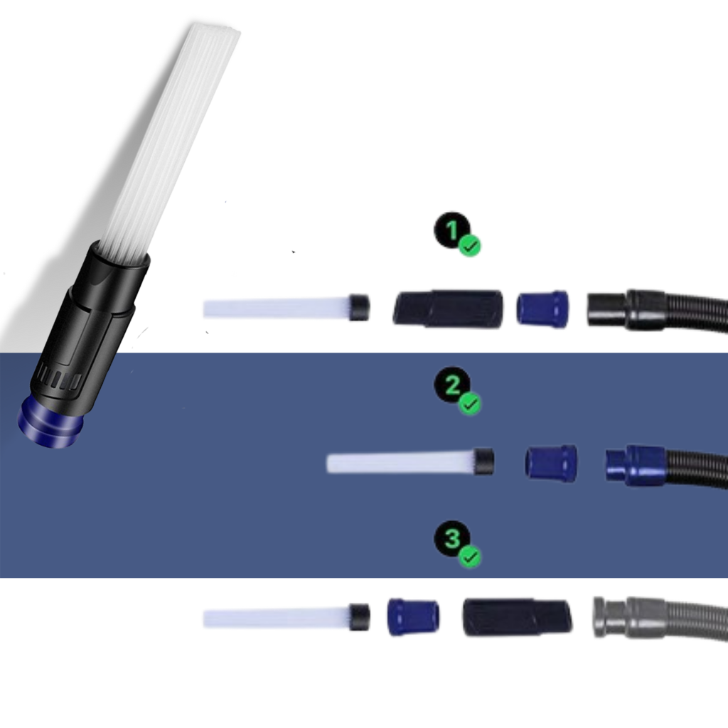 The vacuum extension is designed with dozens of individual micro suction tubes that are fully flexible and can get where the dust hides!