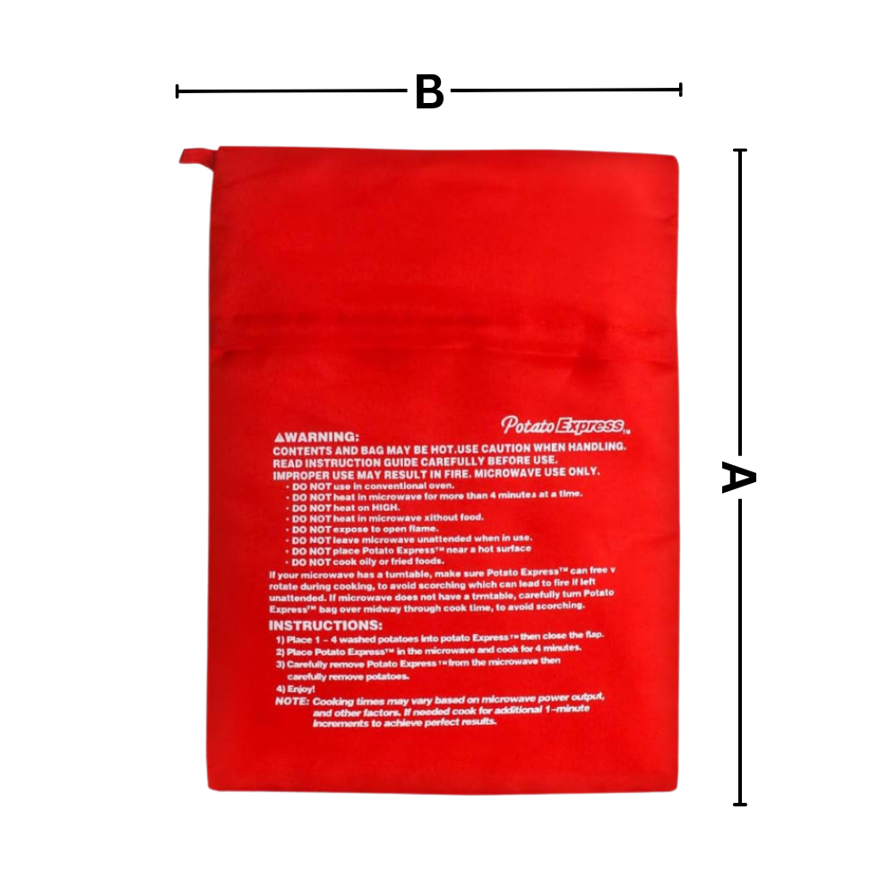 Maintaining cleanliness in your kitchen has never been easier, thanks to the washable fabric of our baked potato microwave bag. After use, simply rinse the bag under tap water or place it in your washing machine to remove any food residues or stains. The durable material is designed to withstand multiple washes, ensuring that your bag remains hygienic and ready for its next use. This washable feature not only contributes to the longevity of the bag but also supports a clean, healthy cooking environment.