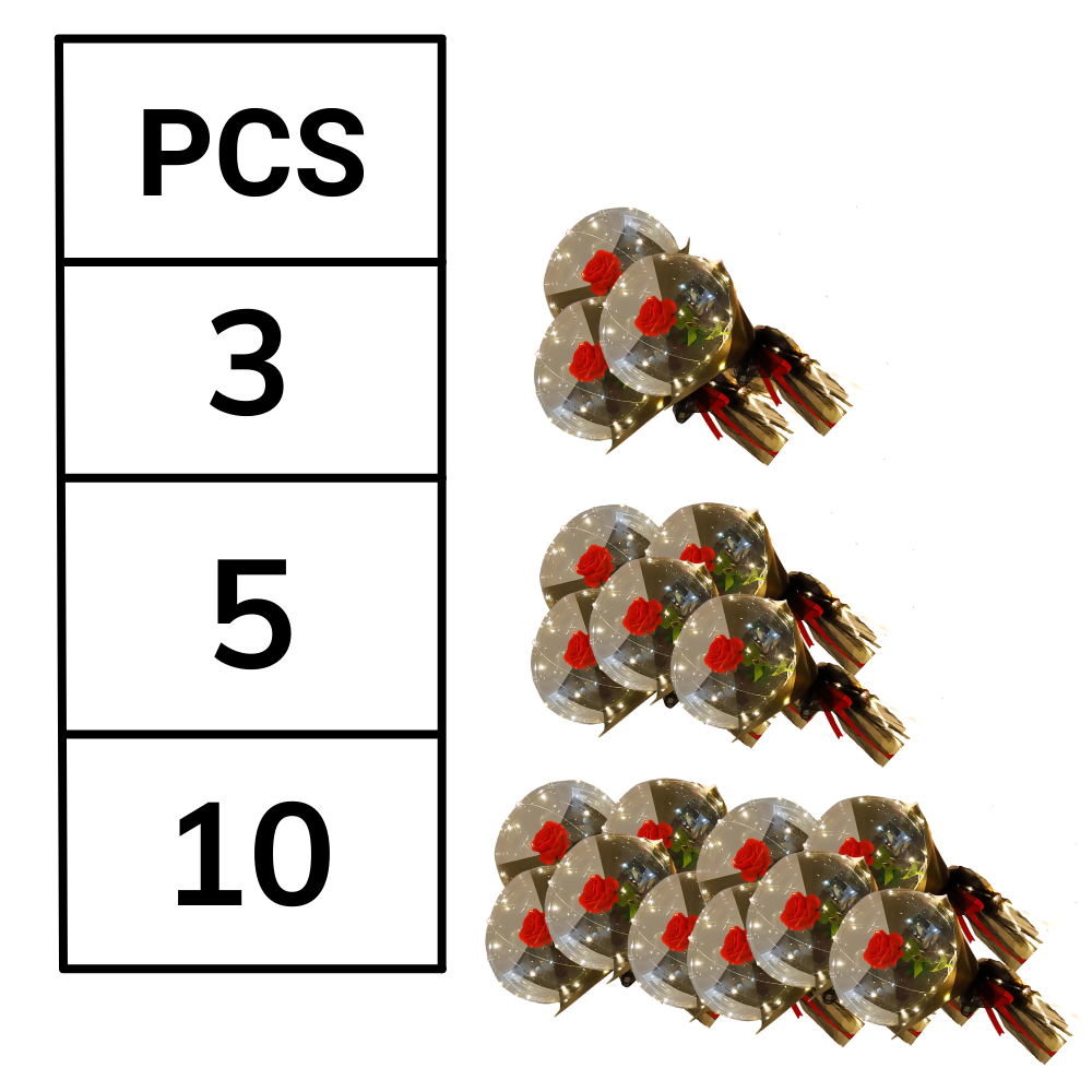 Valentine's Day Rose LED Light Balloon - Transparent Balls with LEDs and Flower - Beautiful Rose LED Balloon -