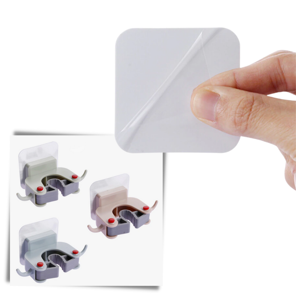 Wall-Mounted Broom Holder - Adhesive Backing for Easy Mounting -